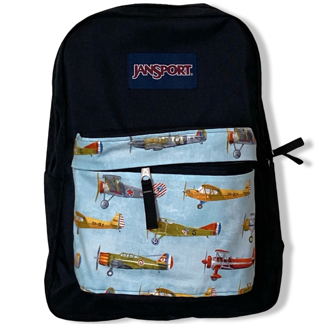 Patchality Tailors will start with a brand new JanSport SuperBreak backpack, then patch your selected fabric to the front pouch and both inside liners.