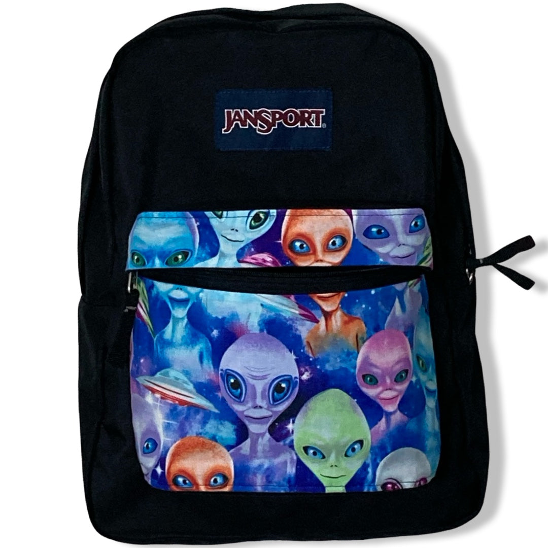 Patchality Tailors will start with a brand new JanSport SuperBreak backpack, then patch your selected fabric to the front pouch and both inside liners.