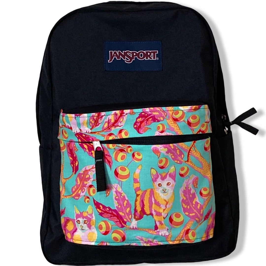 Patchality Tailors will start with a brand new JanSport SuperBreak backpack, then patch your selected fabric to the front pouch and both inside liners.