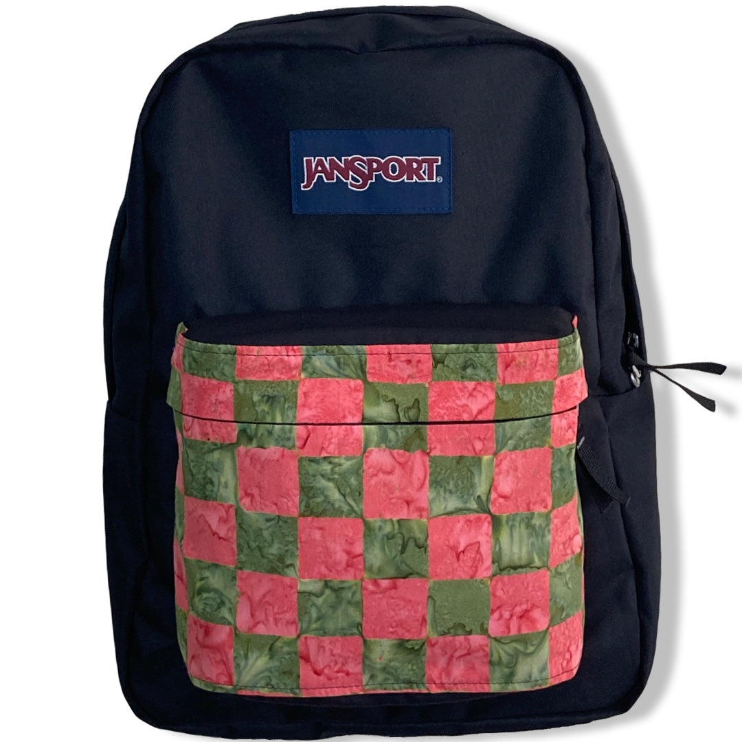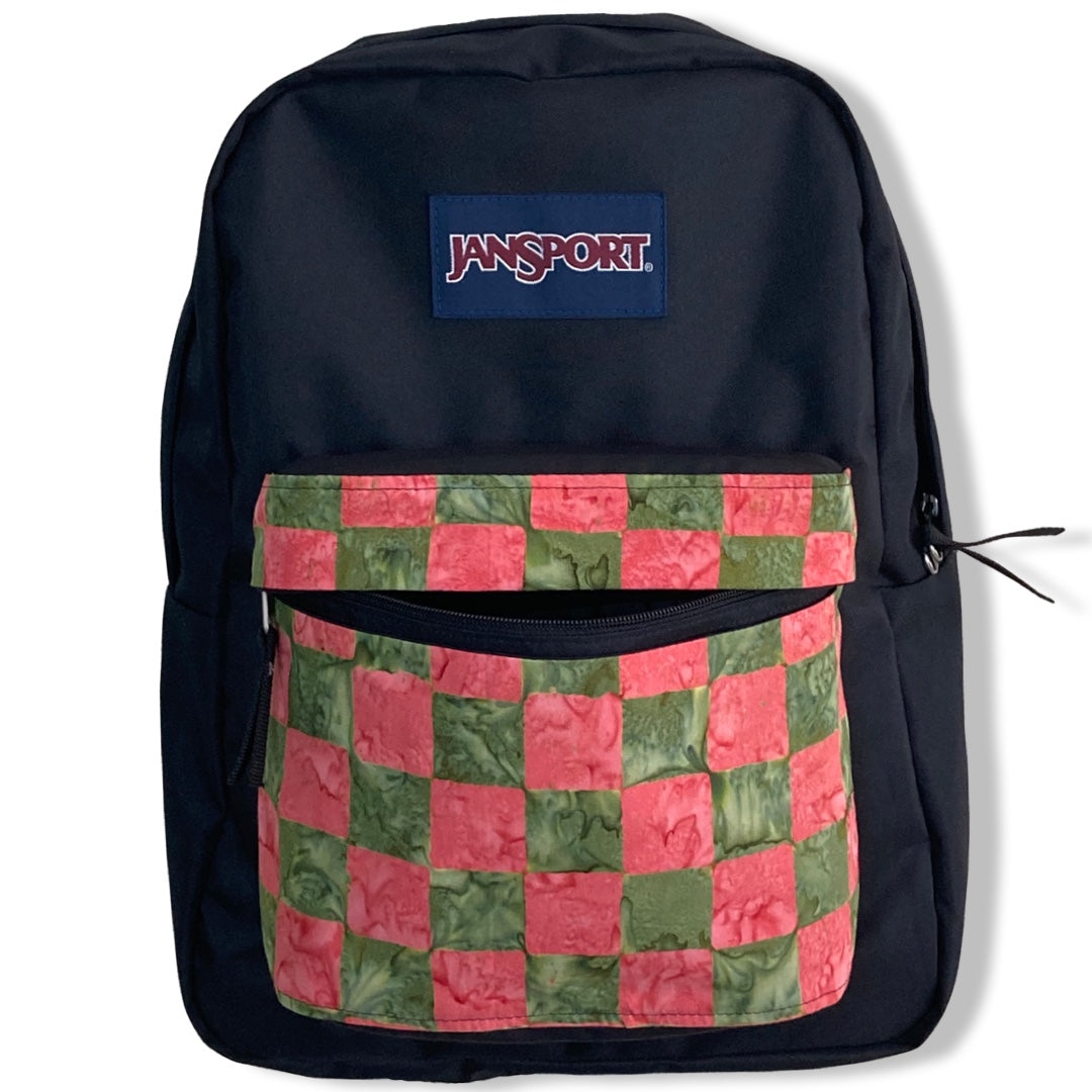 Patchality Tailors will start with a brand new JanSport SuperBreak backpack, then patch your selected fabric to the front pouch and both inside liners.