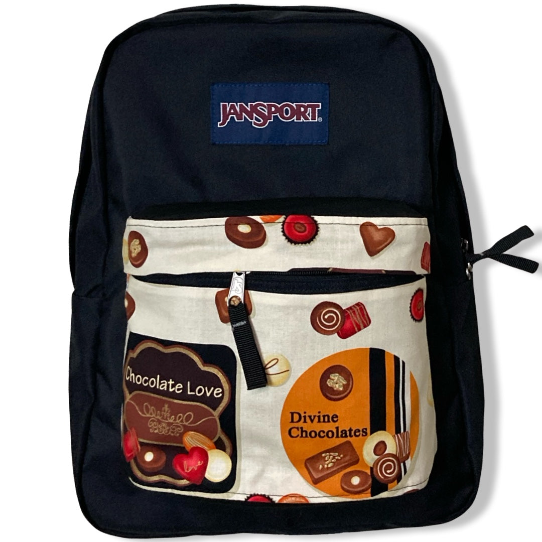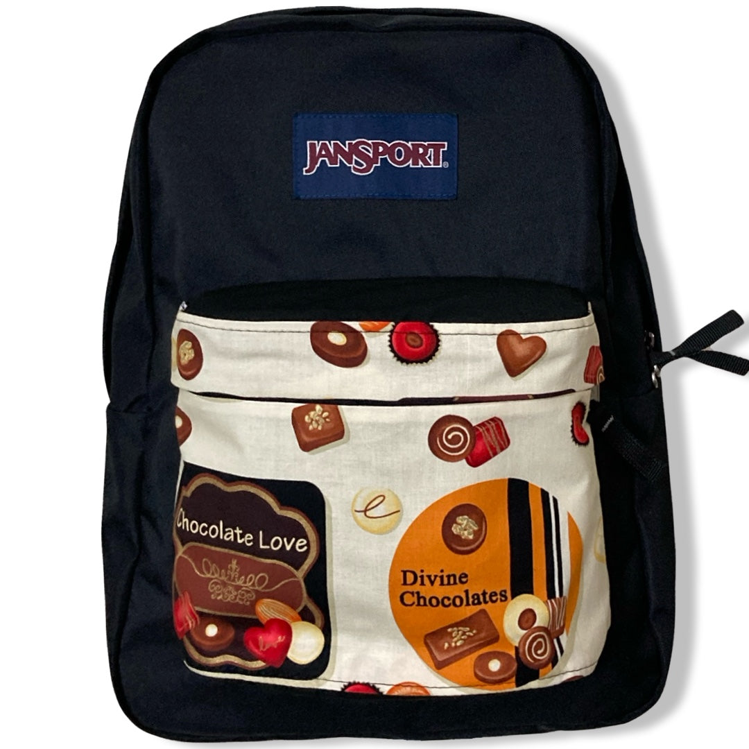 Patchality Tailors will start with a brand new JanSport SuperBreak backpack, then patch your selected fabric to the front pouch and both inside liners.