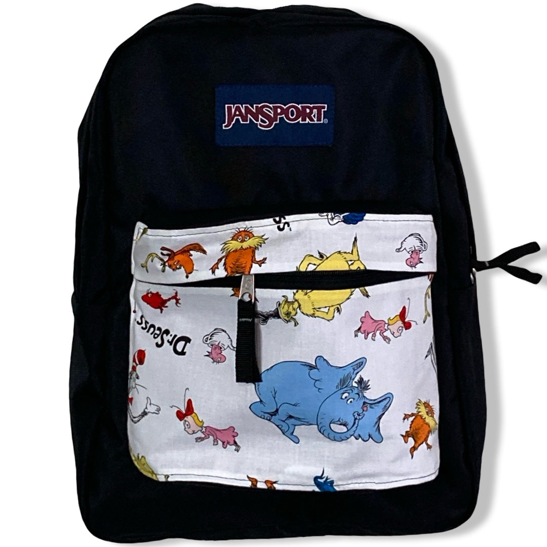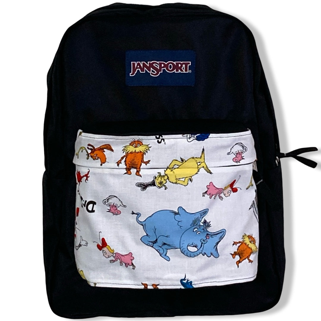Patchality Tailors will start with a brand new JanSport SuperBreak backpack, then patch your selected fabric to the front pouch and both inside liners.