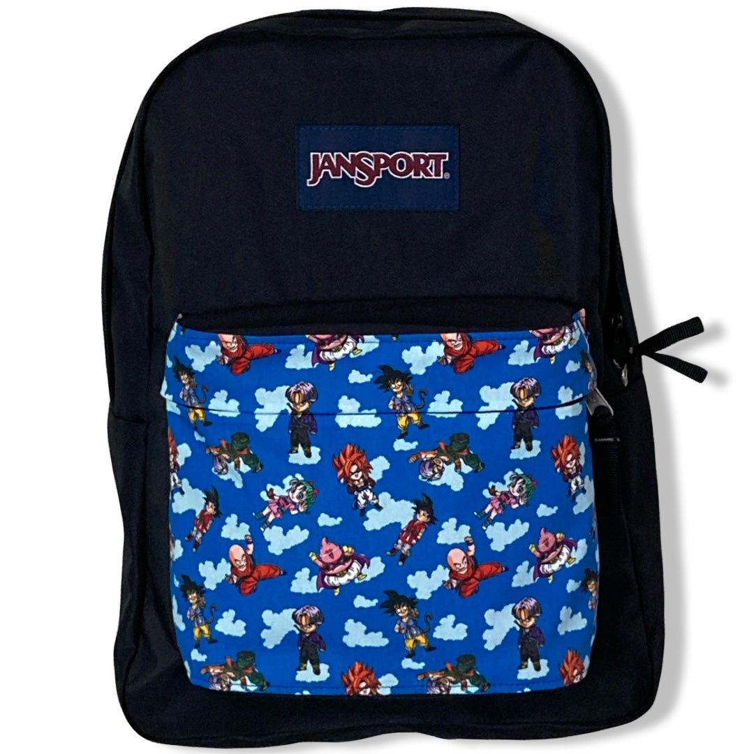 Patchality Tailors will start with a brand new JanSport SuperBreak backpack, then patch your selected fabric to the front pouch and both inside liners.