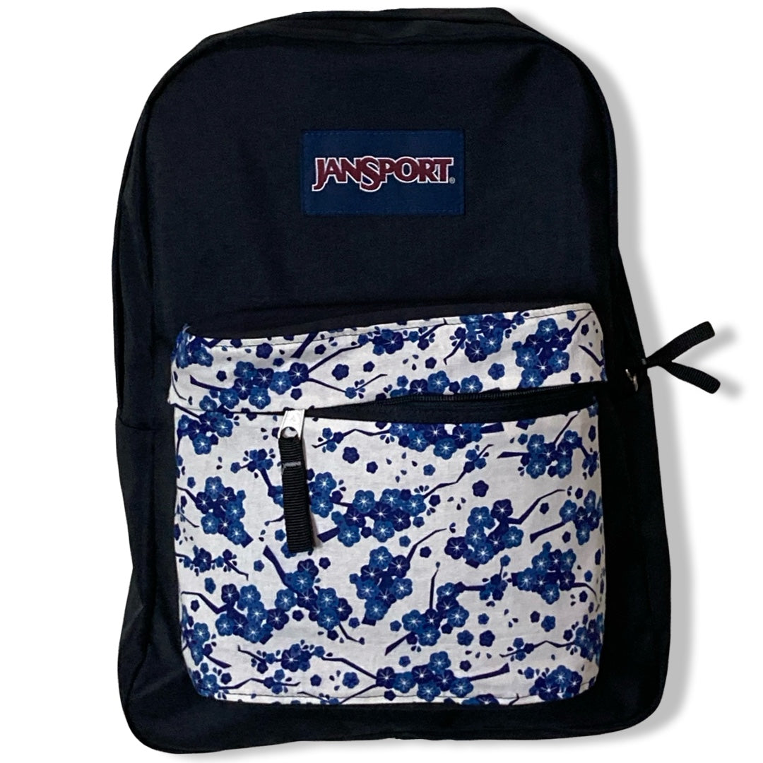 Patchality Tailors will start with a brand new JanSport SuperBreak backpack, then patch your selected fabric to the front pouch and both inside liners.