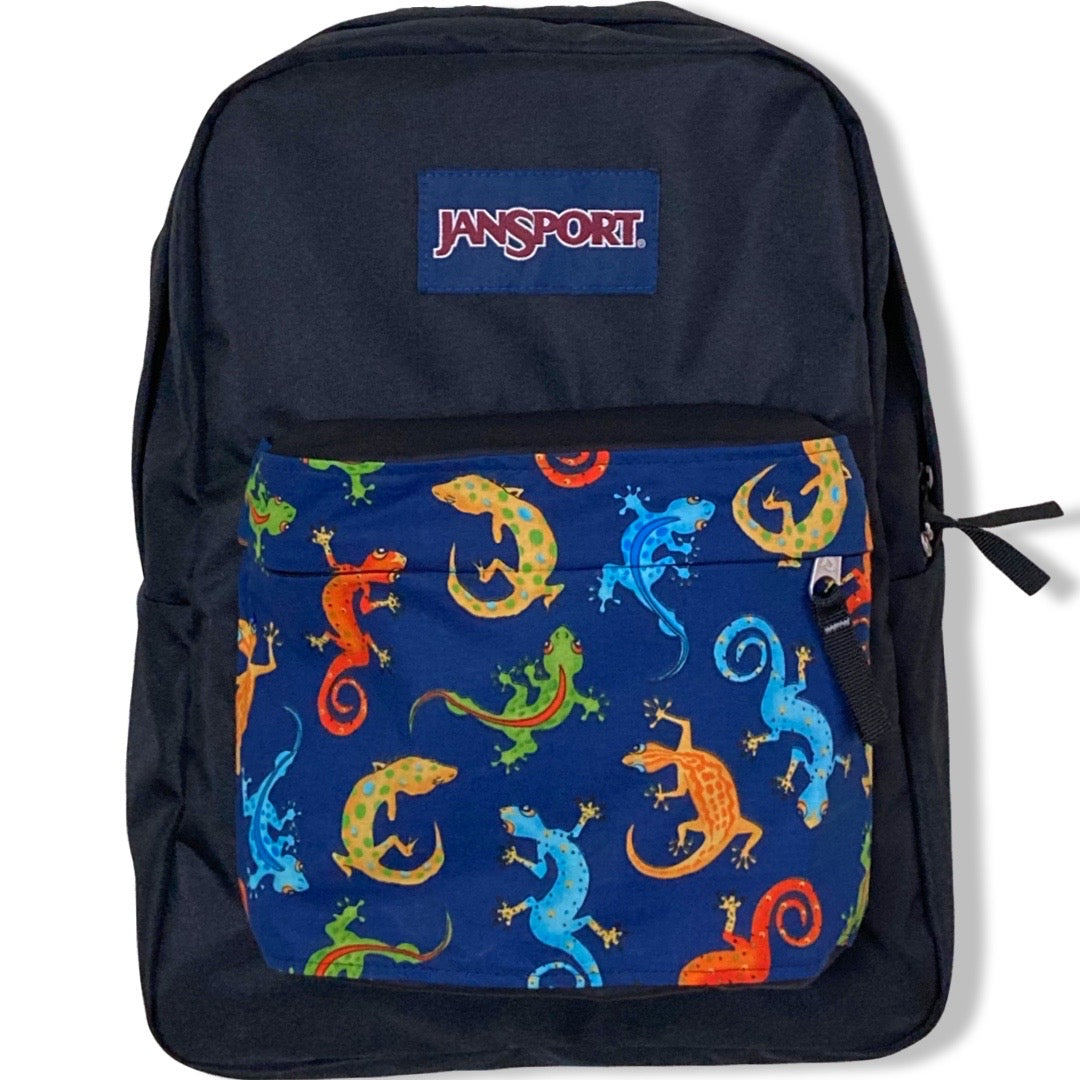 Patchality Tailors will start with a brand new JanSport SuperBreak backpack, then patch your selected fabric to the front pouch and both inside liners.