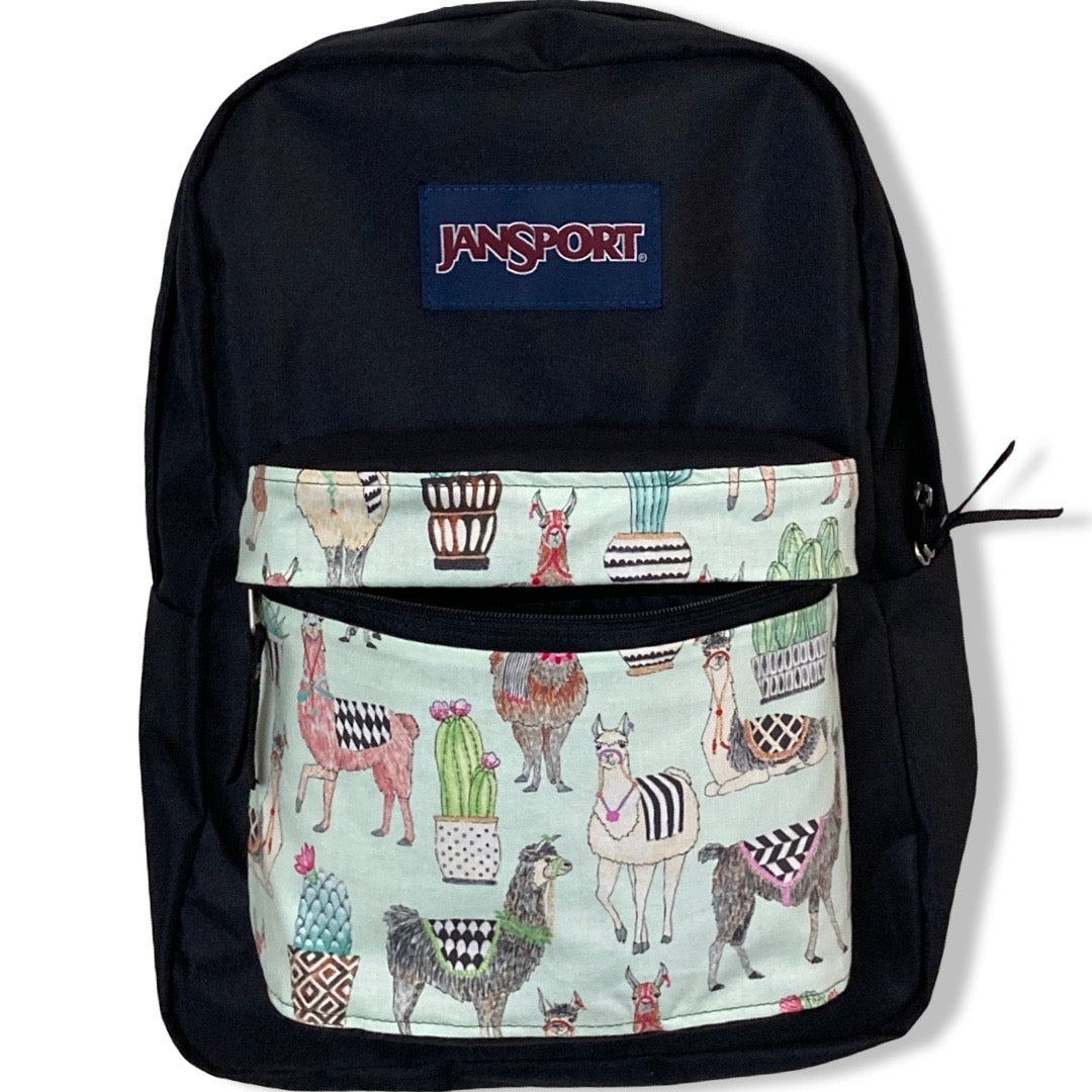 Patchality Tailors will start with a brand new JanSport SuperBreak backpack, then patch your selected fabric to the front pouch and both inside liners.