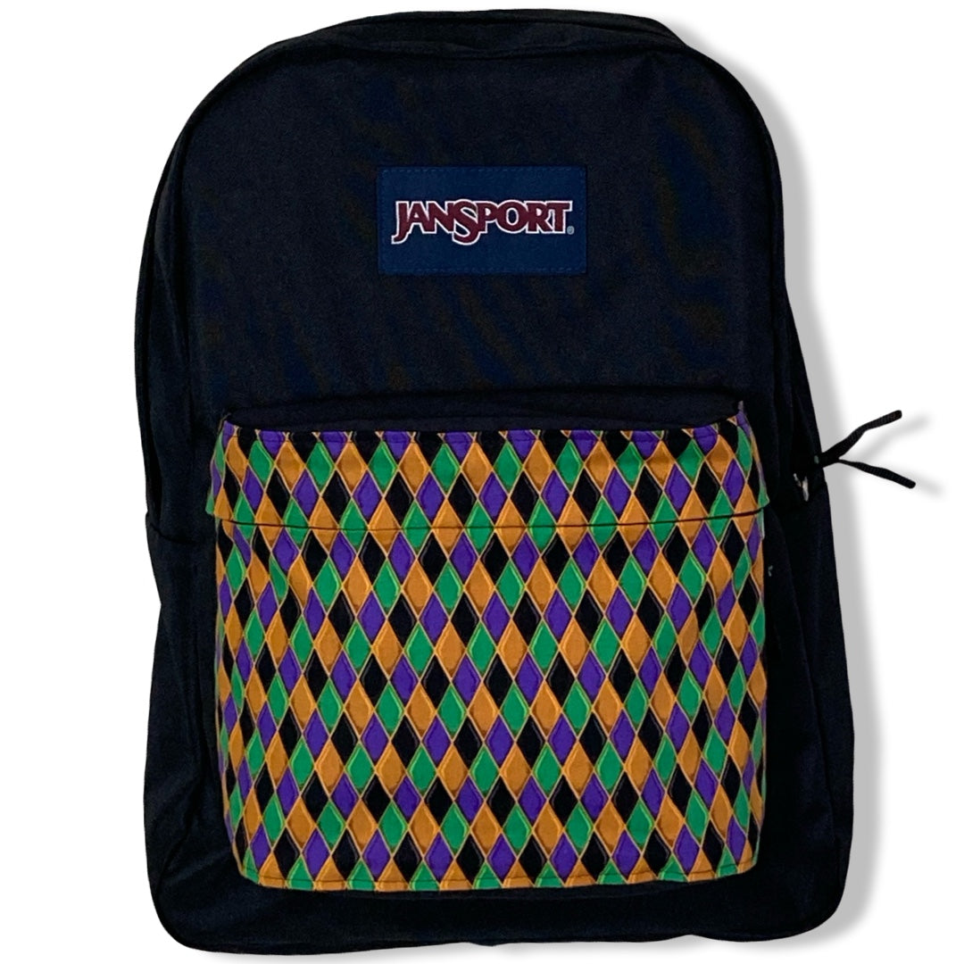 Patchality Tailors will start with a brand new JanSport SuperBreak backpack, then patch your selected fabric to the front pouch and both inside liners.