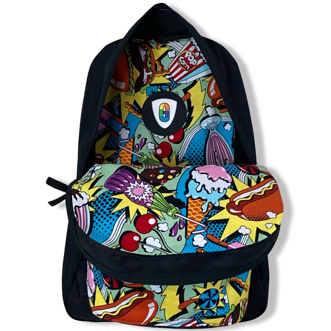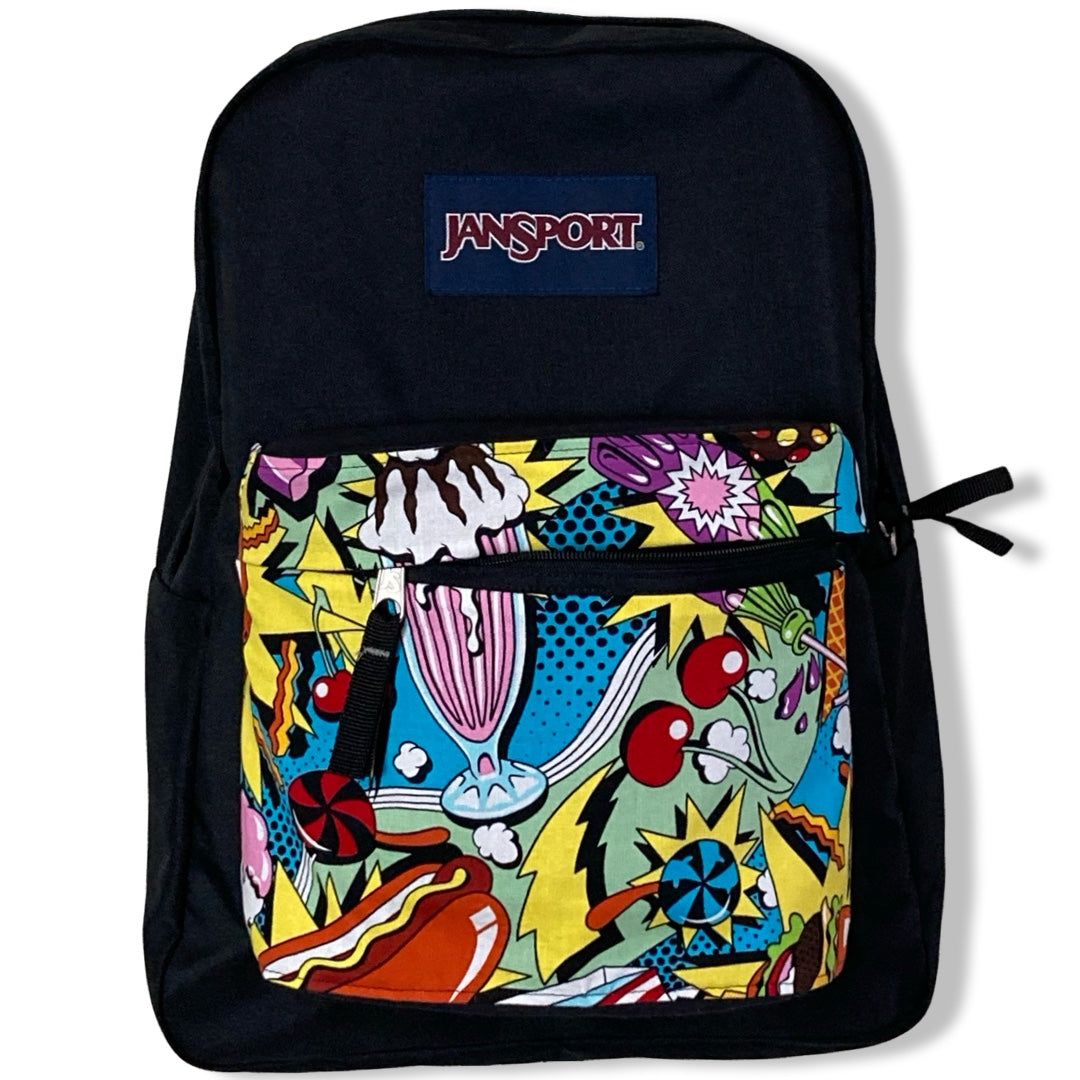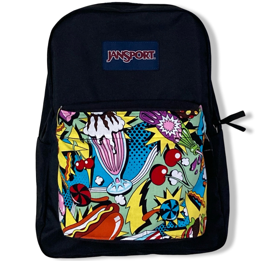 Patchality Tailors will start with a brand new JanSport SuperBreak backpack, then patch your selected fabric to the front pouch and both inside liners.