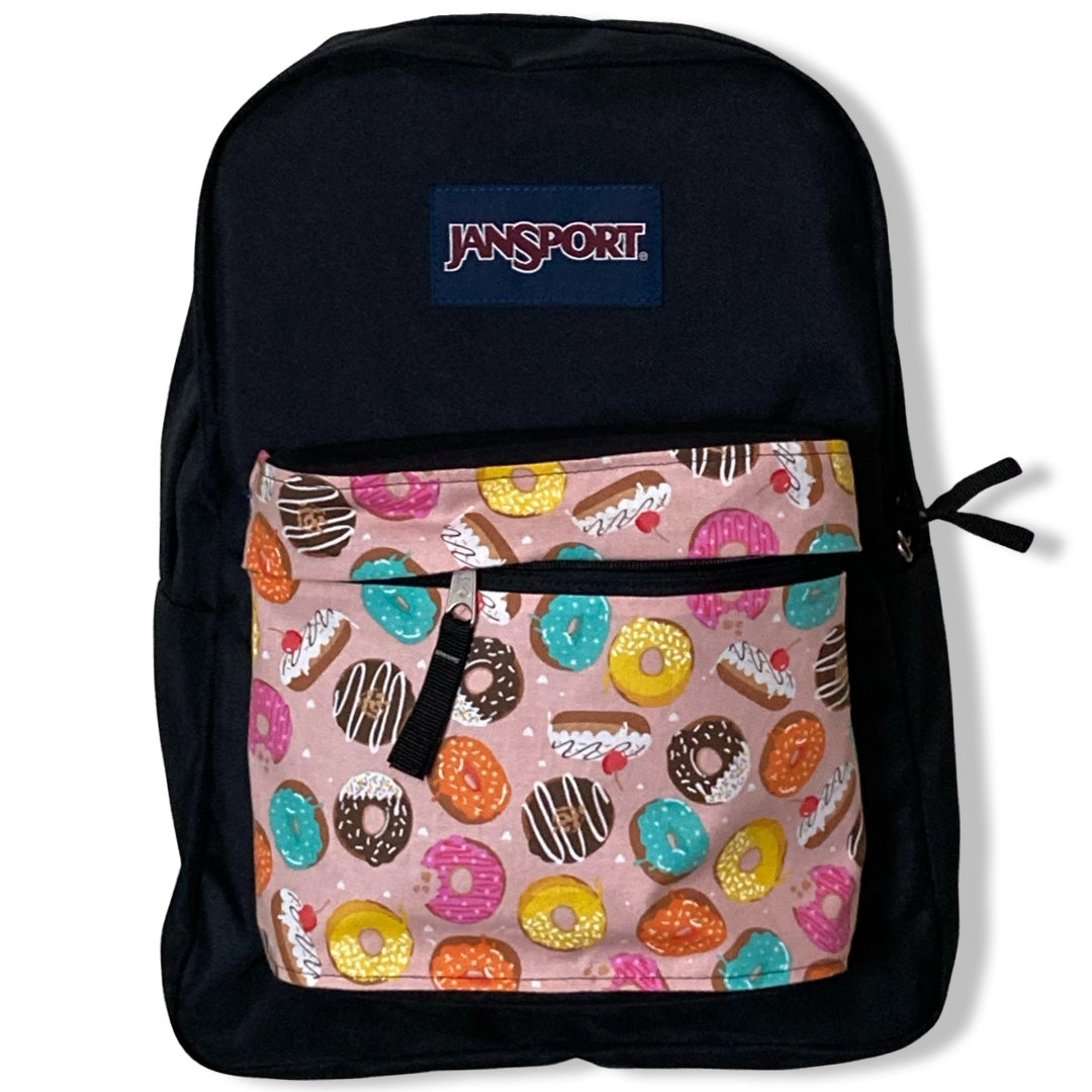 Patchality Tailors will start with a brand new JanSport SuperBreak backpack, then patch your selected fabric to the front pouch and both inside liners.