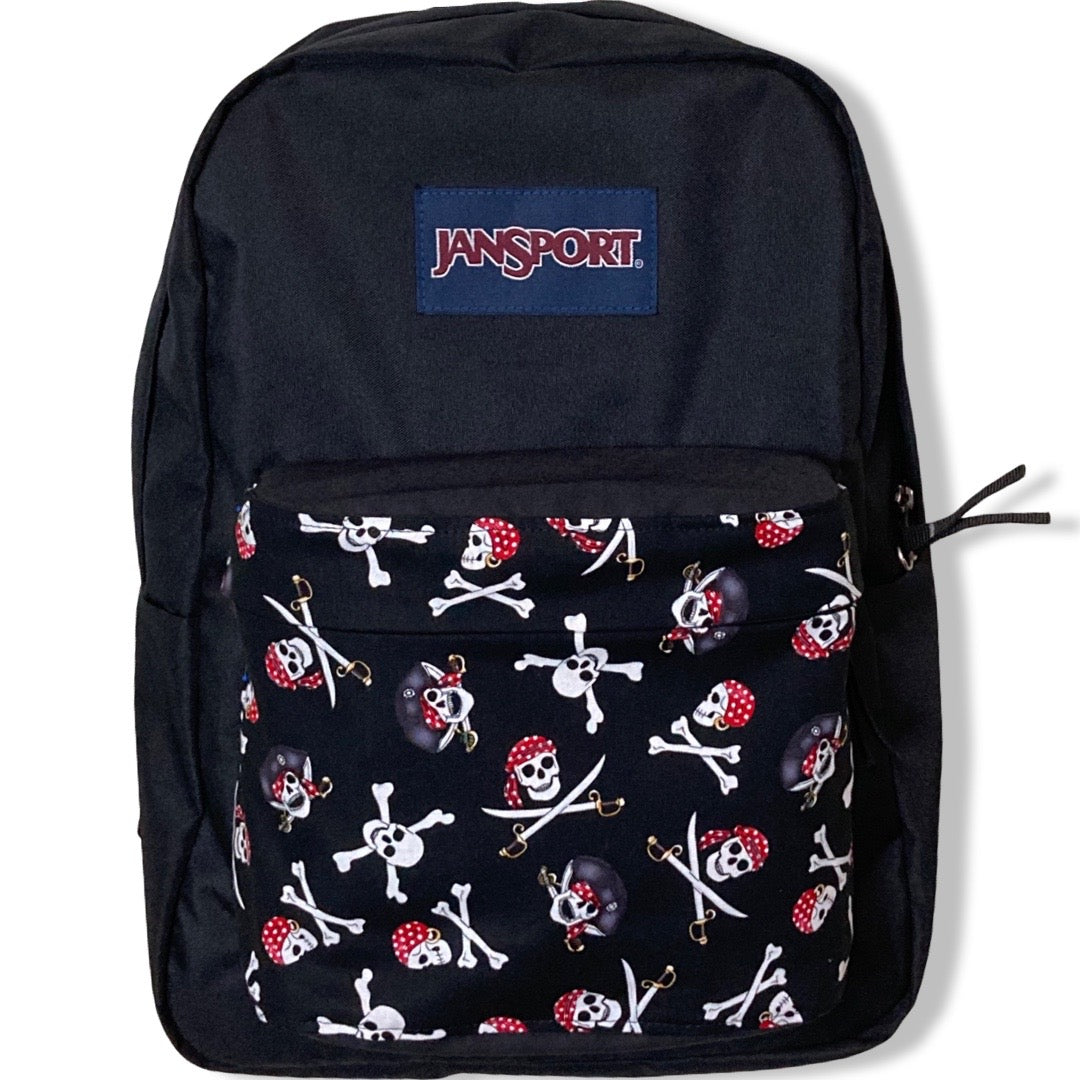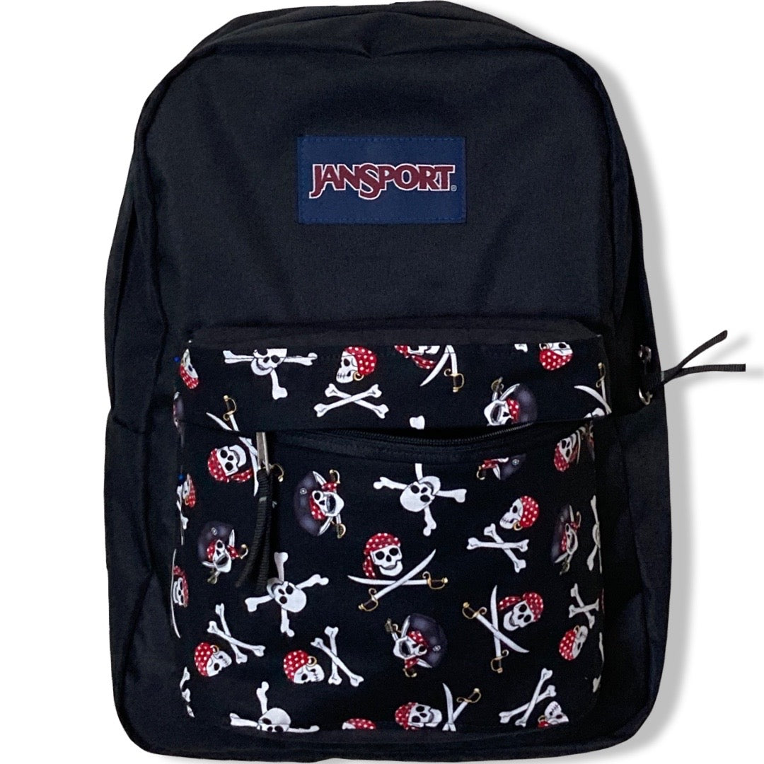 Patchality Tailors will start with a brand new JanSport SuperBreak backpack, then patch your selected fabric to the front pouch and both inside liners.