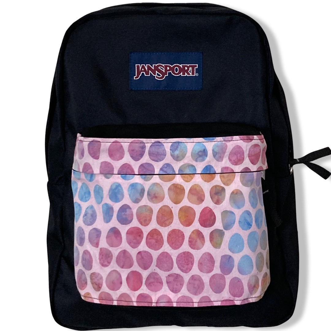 Patchality Tailors will start with a brand new JanSport SuperBreak backpack, then patch your selected fabric to the front pouch and both inside liners.