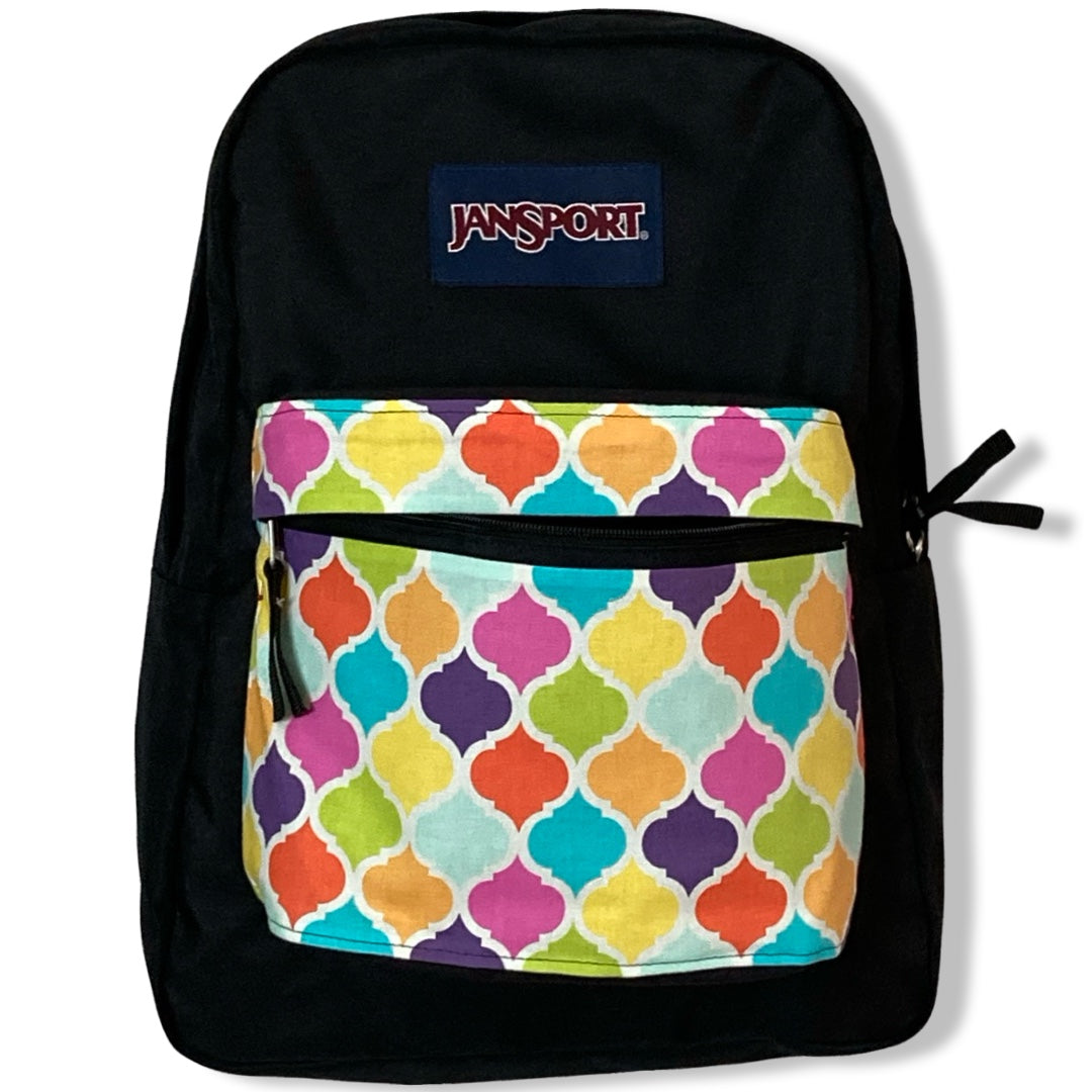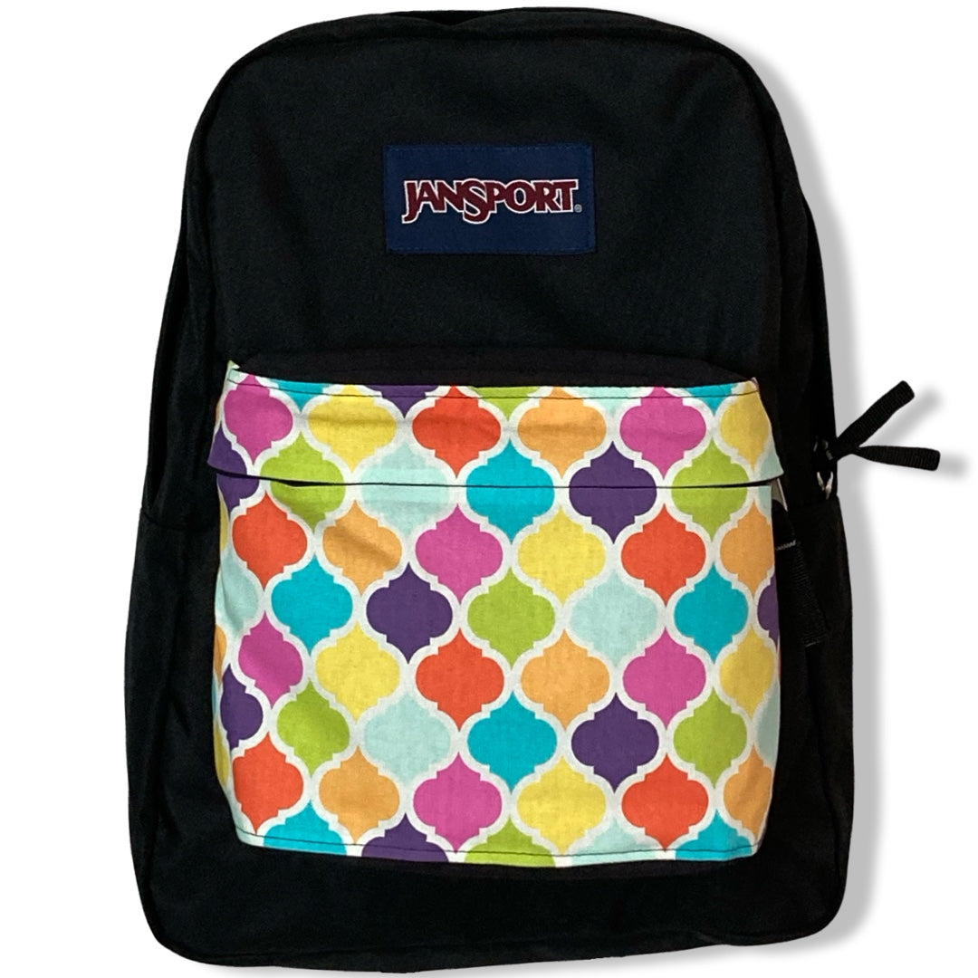 Patchality Tailors will start with a brand new JanSport SuperBreak backpack, then patch your selected fabric to the front pouch and both inside liners.