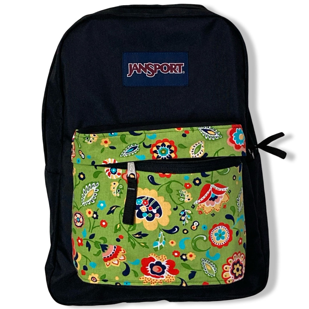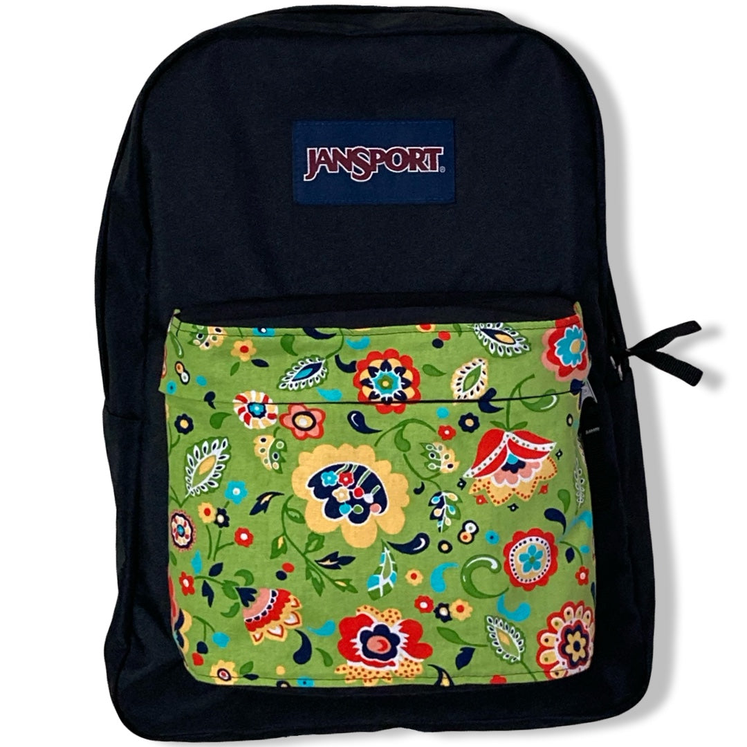 Patchality Tailors will start with a brand new JanSport SuperBreak backpack, then patch your selected fabric to the front pouch and both inside liners.