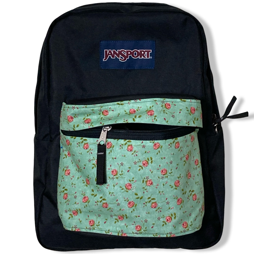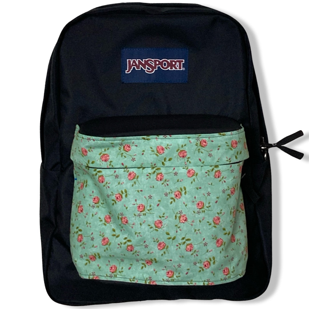 Patchality Tailors will start with a brand new JanSport SuperBreak backpack, then patch your selected fabric to the front pouch and both inside liners.