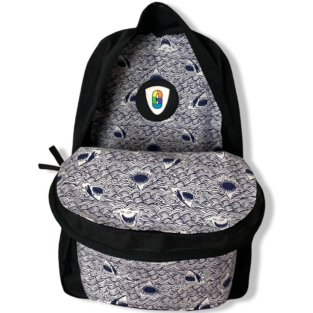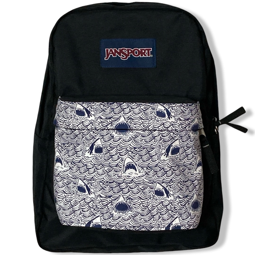 Patchality Tailors will start with a brand new JanSport SuperBreak backpack, then patch your selected fabric to the front pouch and both inside liners.