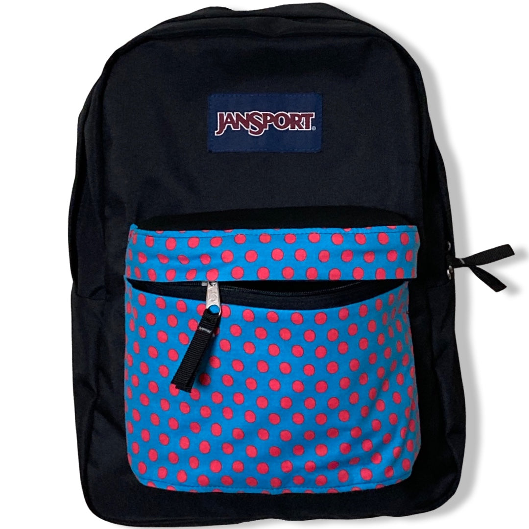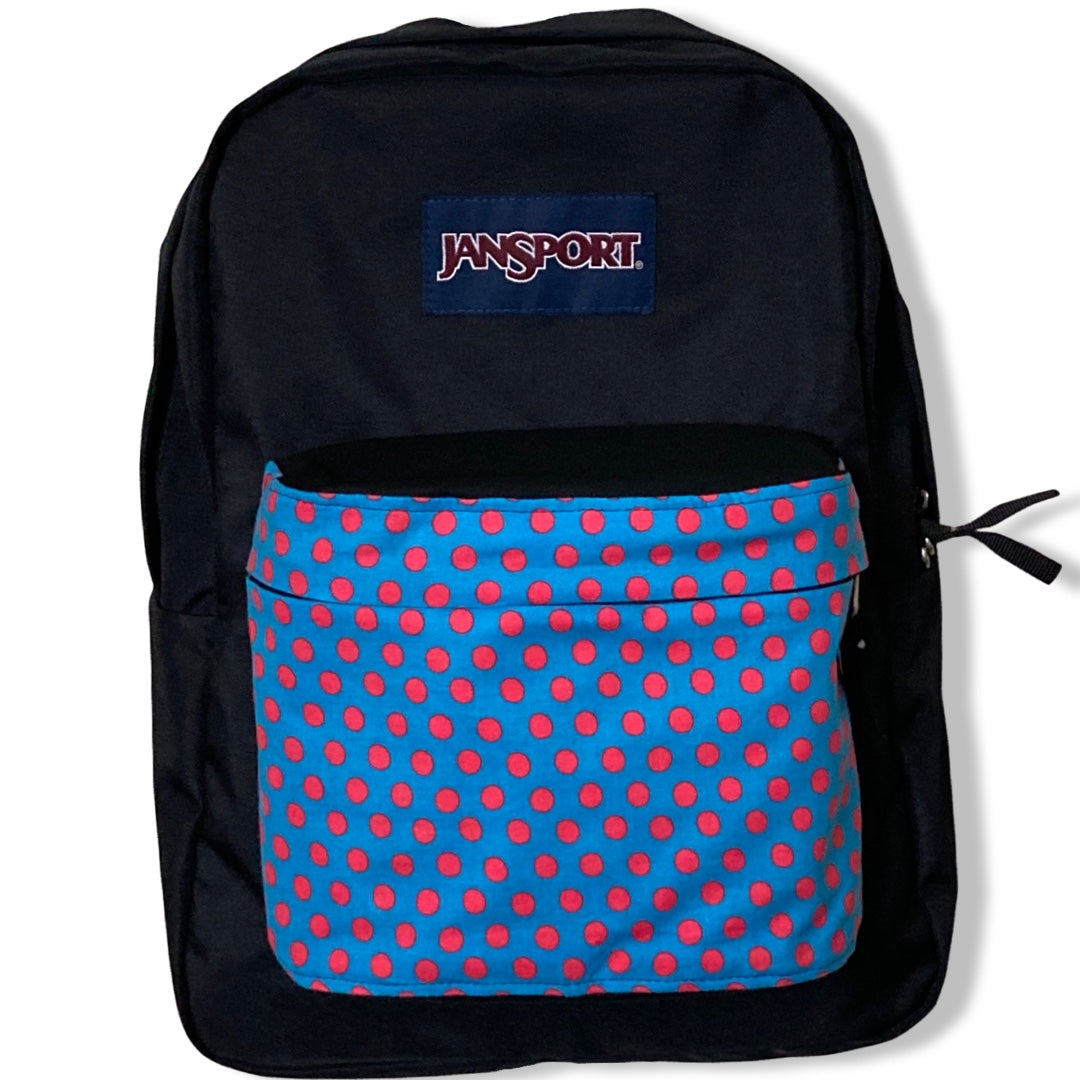 Patchality Tailors will start with a brand new JanSport SuperBreak backpack, then patch your selected fabric to the front pouch and both inside liners.