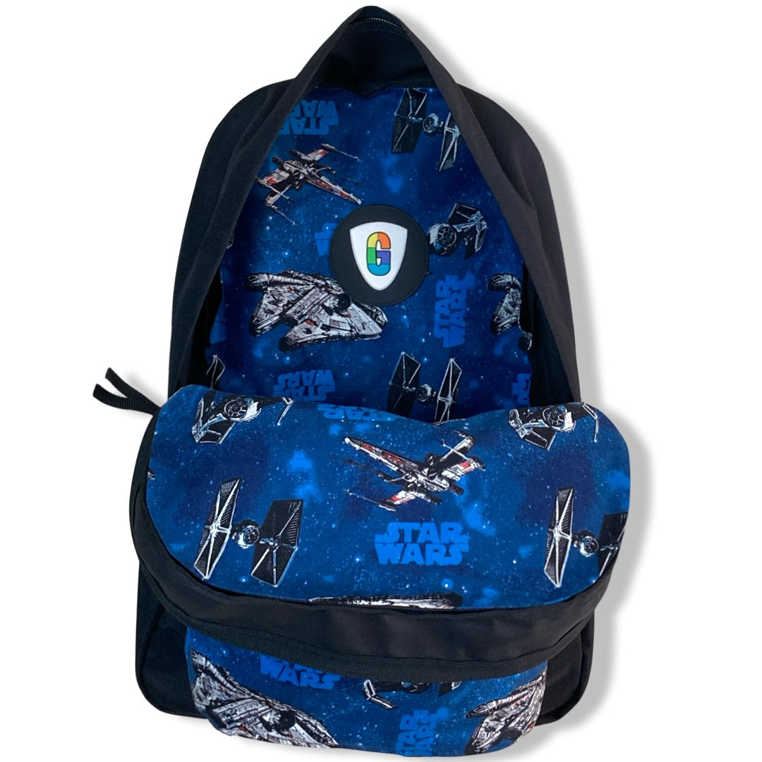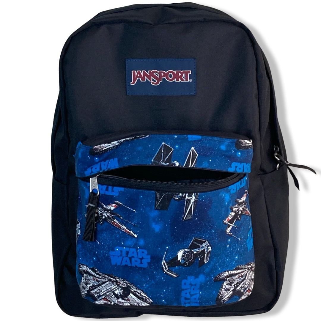 Patchality Tailors will start with a brand new JanSport SuperBreak backpack, then patch your selected fabric to the front pouch and both inside liners.