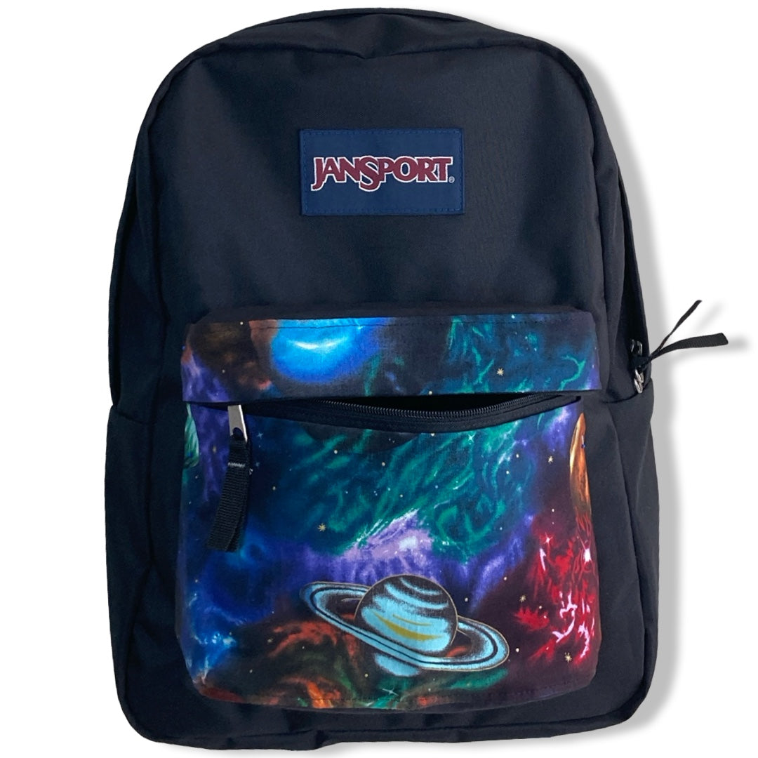 Patchality Tailors will start with a brand new JanSport SuperBreak backpack, then patch your selected fabric to the front pouch and both inside liners.