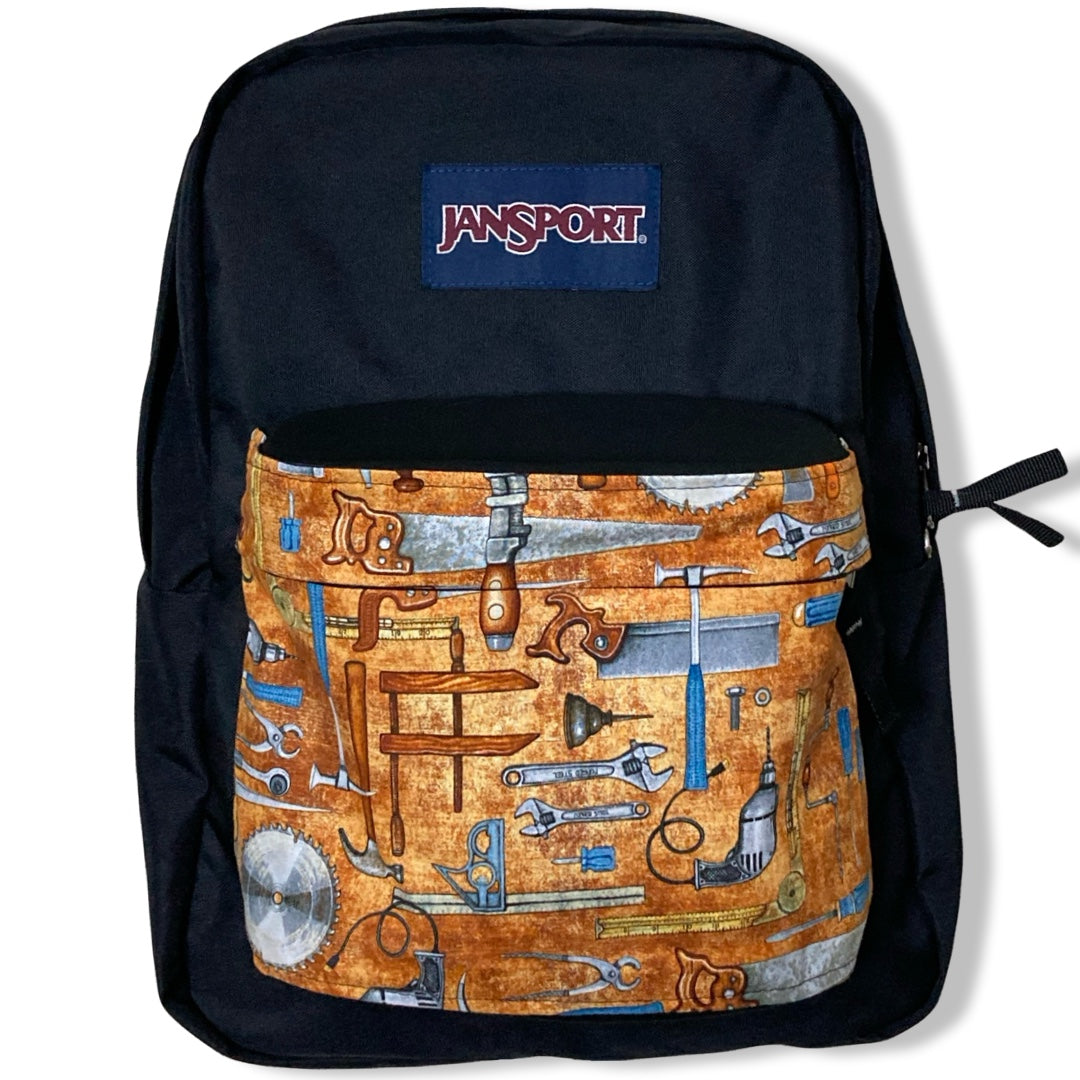 Patchality Tailors will start with a brand new JanSport SuperBreak backpack, then patch your selected fabric to the front pouch and both inside liners.
