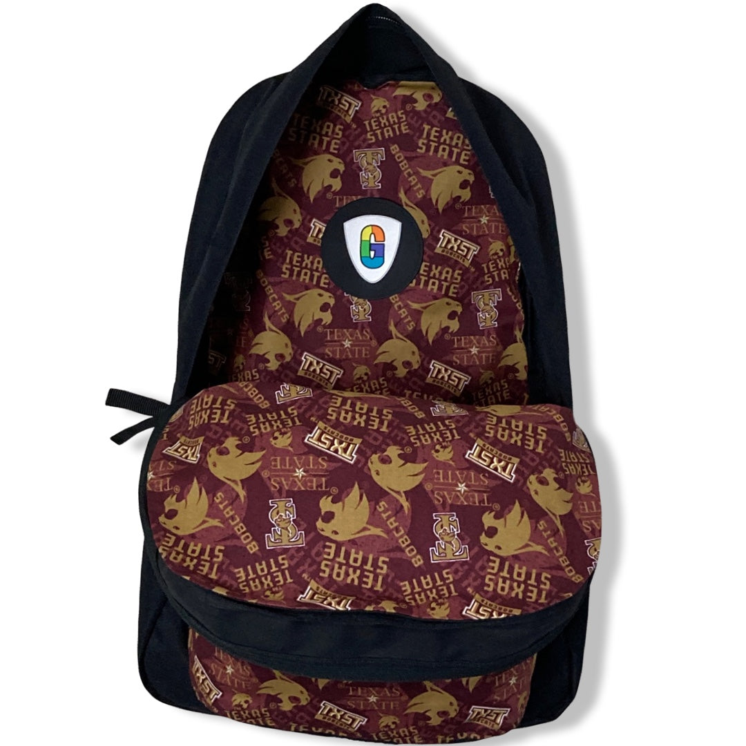 Patchality Tailors will start with a brand new JanSport SuperBreak backpack, then patch your selected fabric to the front pouch and both inside liners.