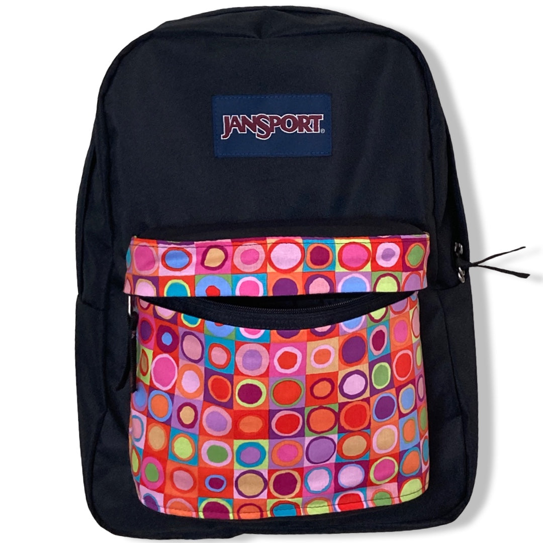 Patchality Tailors will start with a brand new JanSport SuperBreak backpack, then patch your selected fabric to the front pouch and both inside liners.