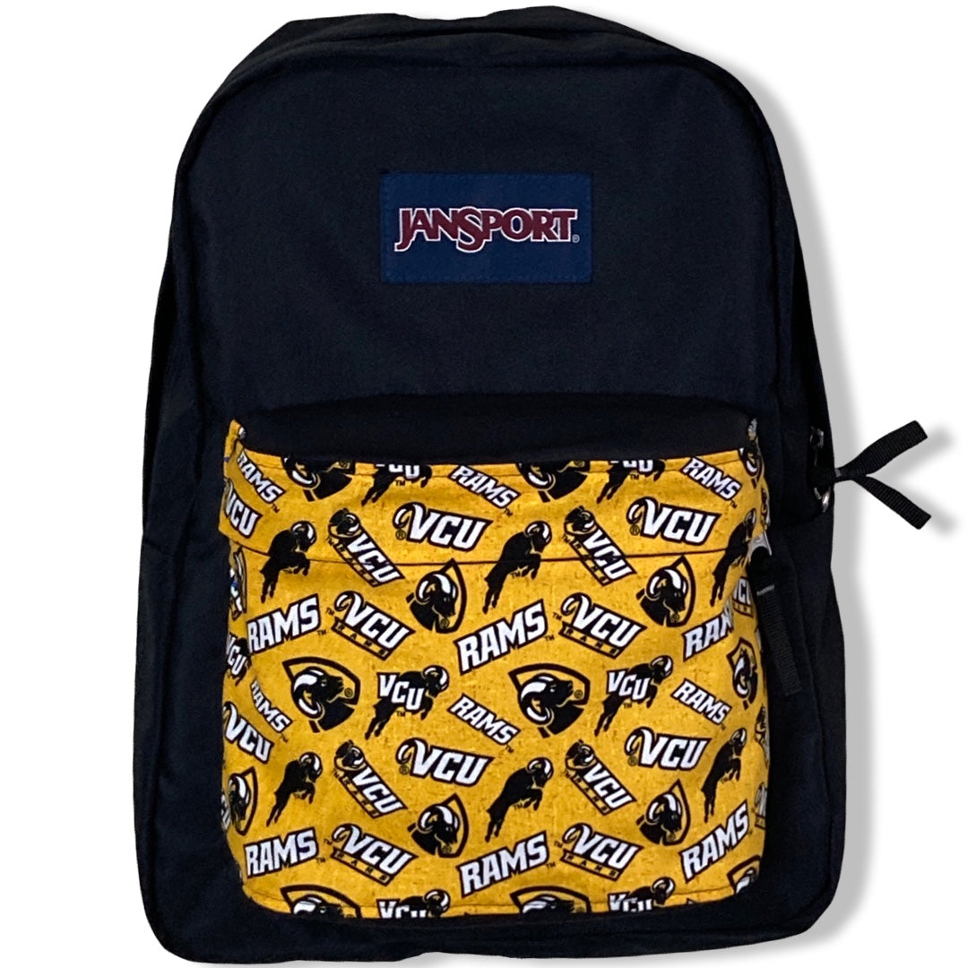 Patchality Tailors will start with a brand new JanSport SuperBreak backpack, then patch your selected fabric to the front pouch and both inside liners.