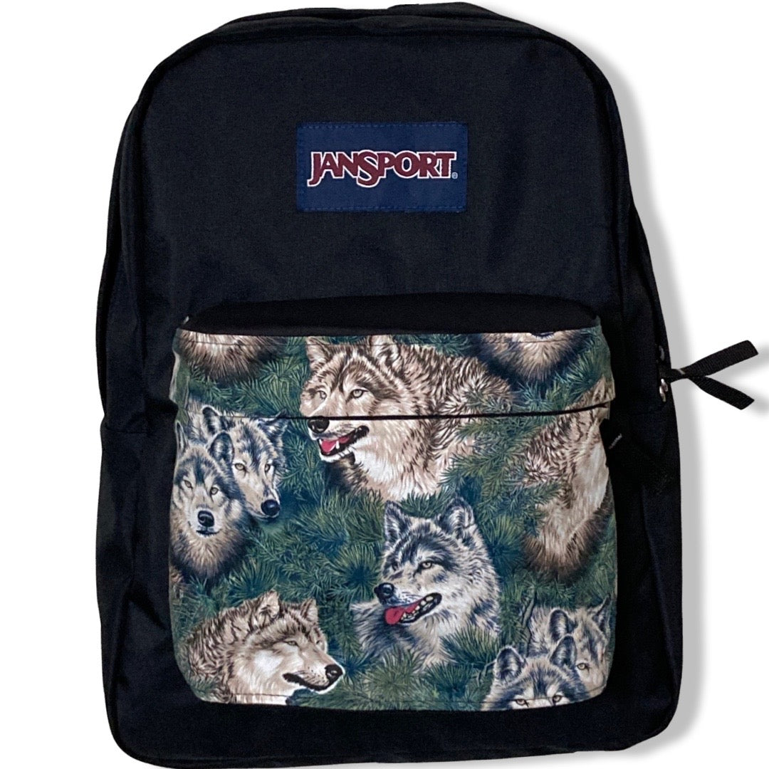 Patchality Tailors will start with a brand new JanSport SuperBreak backpack, then patch your selected fabric to the front pouch and both inside liners.