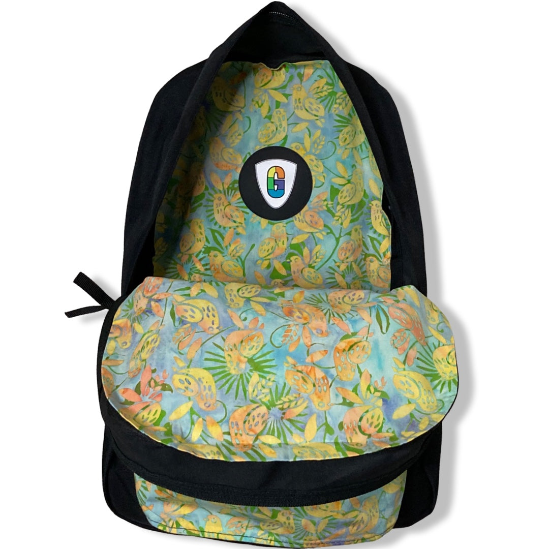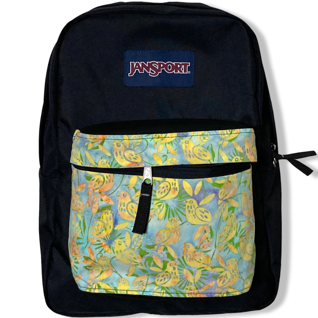 Patchality Tailors will start with a brand new JanSport SuperBreak backpack, then patch your selected fabric to the front pouch and both inside liners.