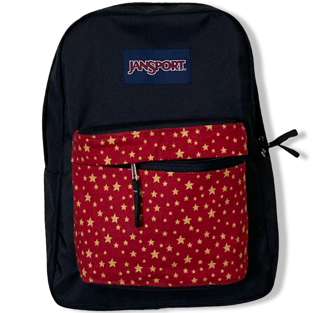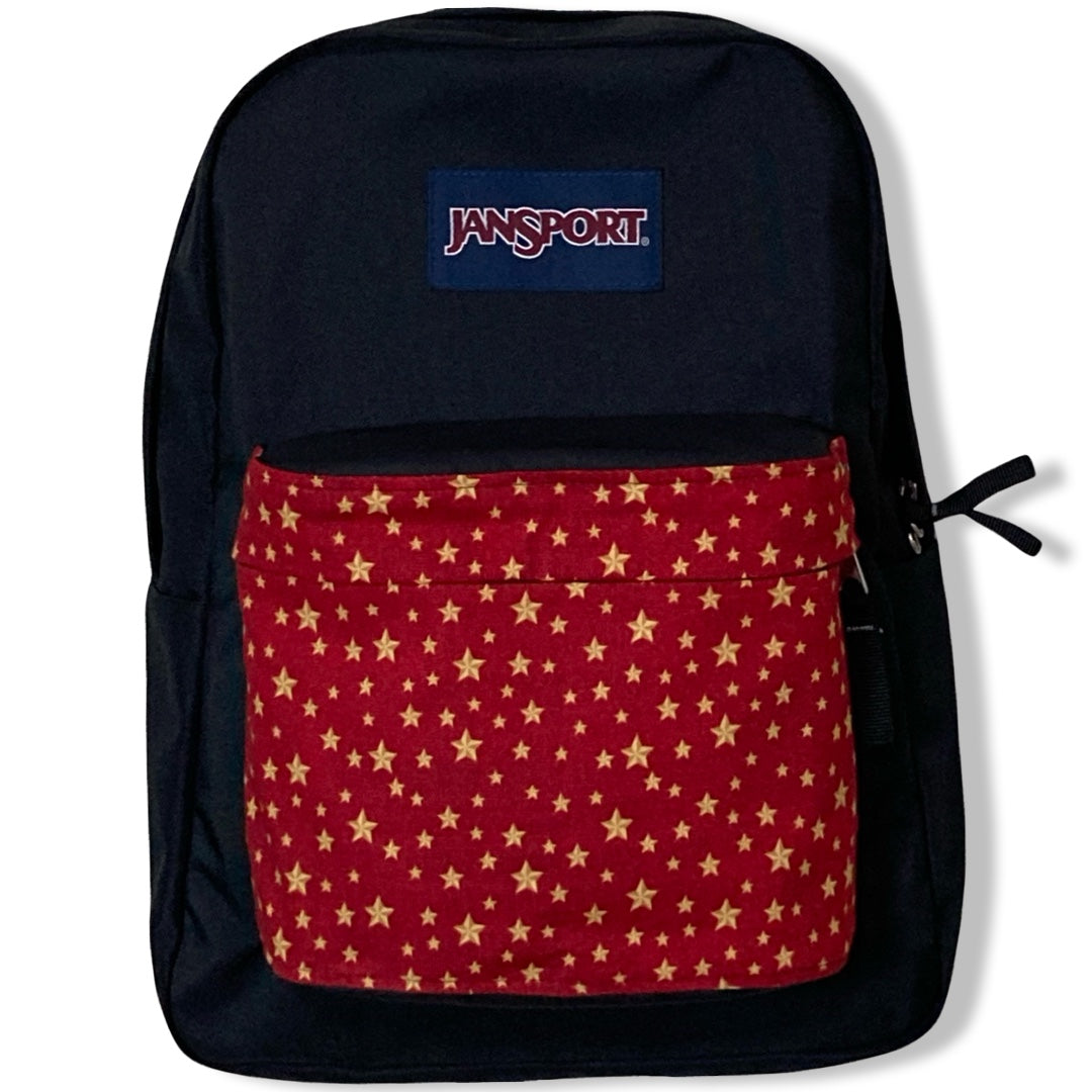Patchality Tailors will start with a brand new JanSport SuperBreak backpack, then patch your selected fabric to the front pouch and both inside liners.