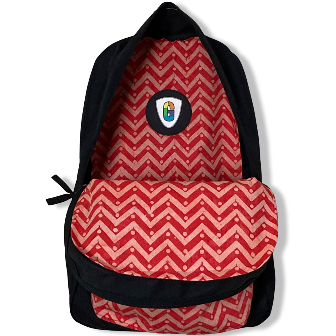Patchality Tailors will start with a brand new JanSport SuperBreak backpack, then patch your selected fabric to the front pouch and both inside liners.