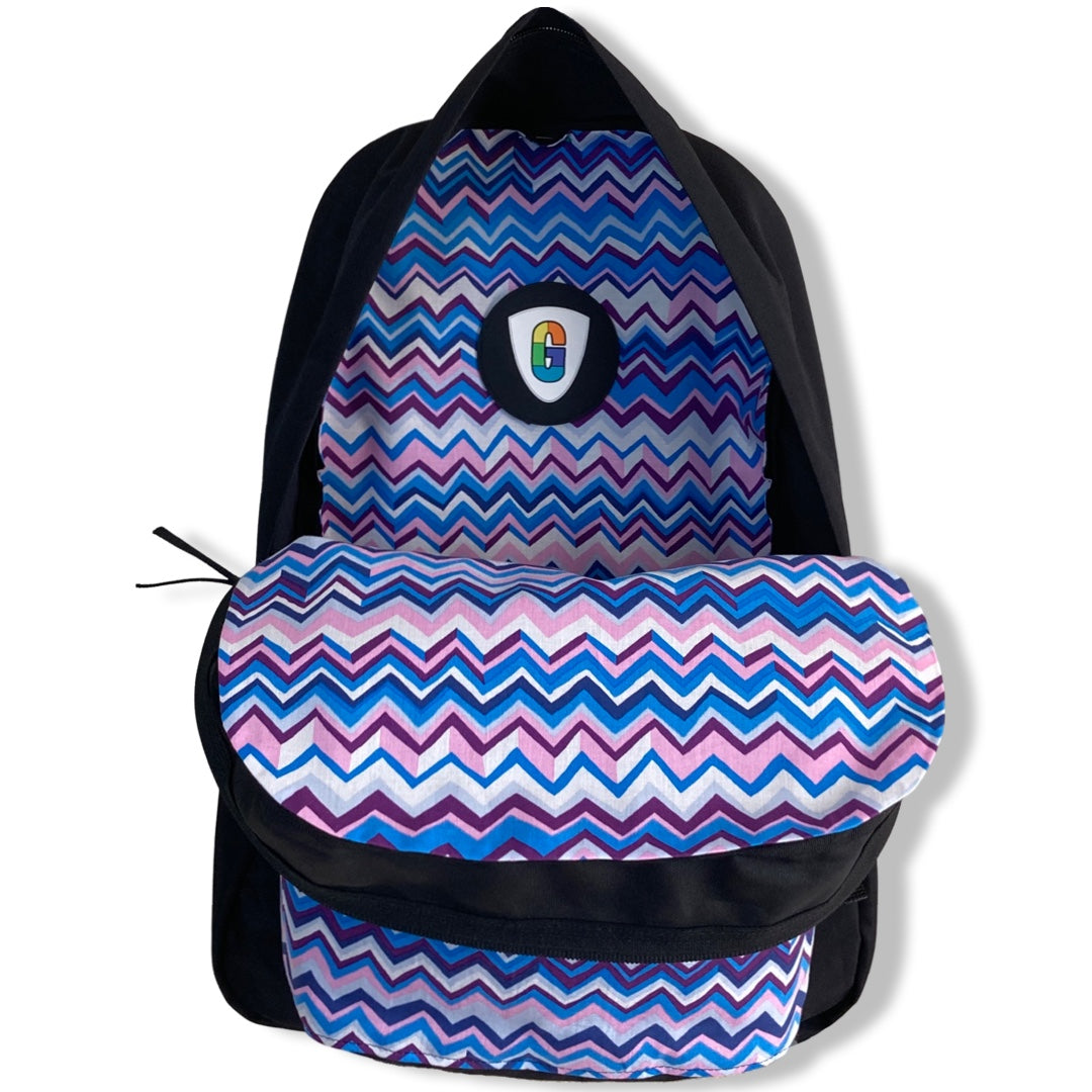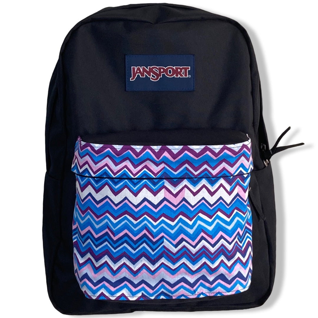 Patchality Tailors will start with a brand new JanSport SuperBreak backpack, then patch your selected fabric to the front pouch and both inside liners.